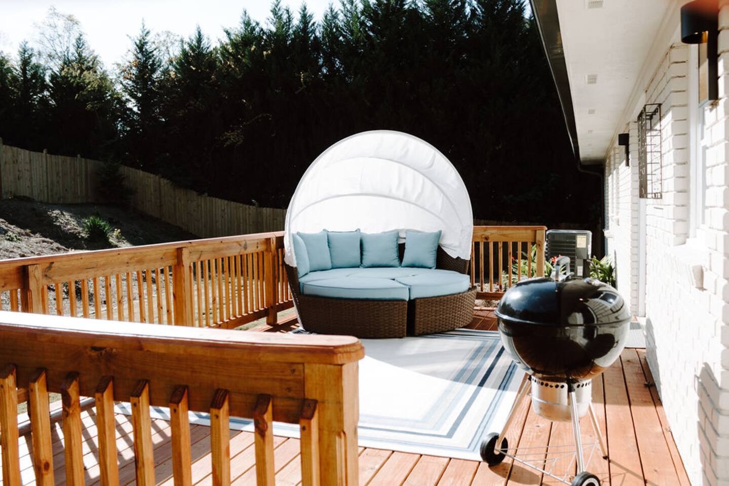 The Blissful Bungalow ! Indulge in the beauty of contemporary design that graces every corner of this well-appointed home. Bask in the sunshine on the expansive outdoor deck, complete with inviting patio seating. Appreciate the privacy and safety of a fully fenced backyard. While inside, enjoy blazing fast WiFi and Smart TVs in each room! Effortlessly control the temperature using the Nest thermostat. The home boasts an open floor plan, a fully equipped kitchen and 6 person dining table.