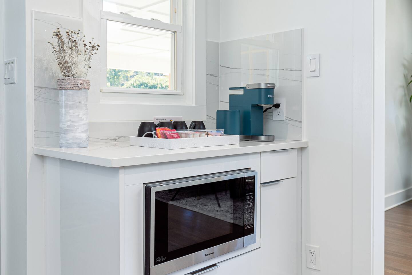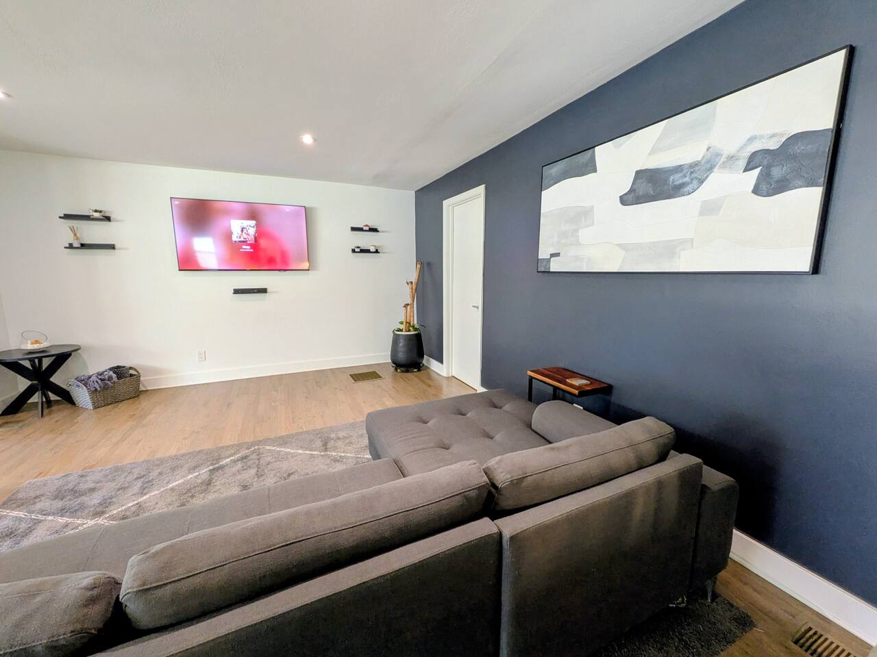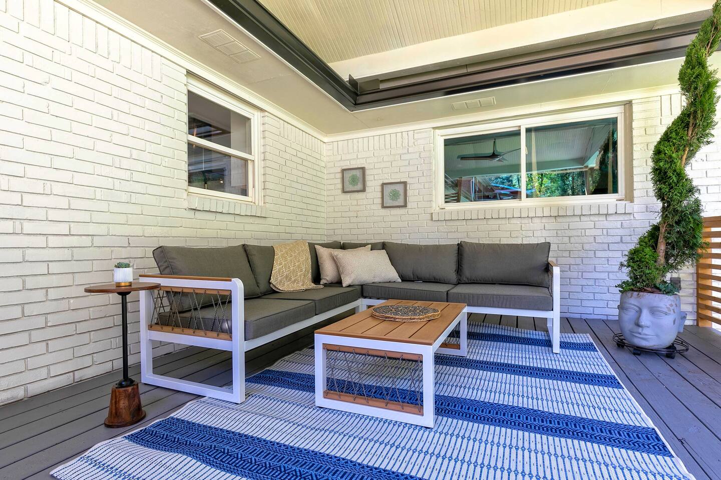 Welcome to The Oak Tree Oasis - a gorgeous, upscale 4 bedroom escape featuring two master suites including a Grand Master Bedroom and double vanity bathroom! Seated quietly behind a giant Oak Tree, this modern home features an open floor plan in the main living space, flat screen smart TVs in every room, a welcoming dining room space, and complimentary tea, coffee, wine and snacks. Enjoy the covered back patio while viewing the serene nature of the expansive backyard. Escape to tranquility!