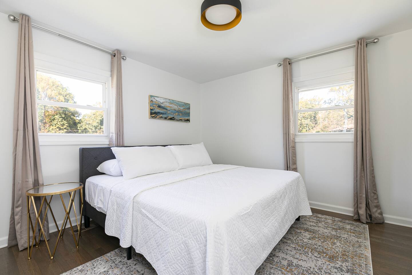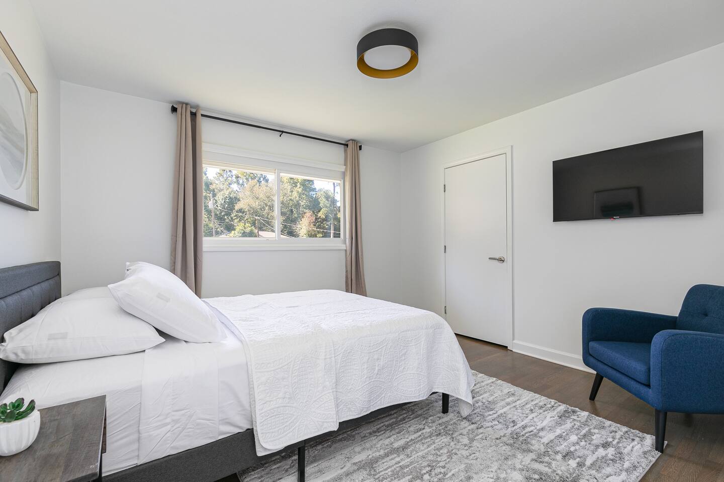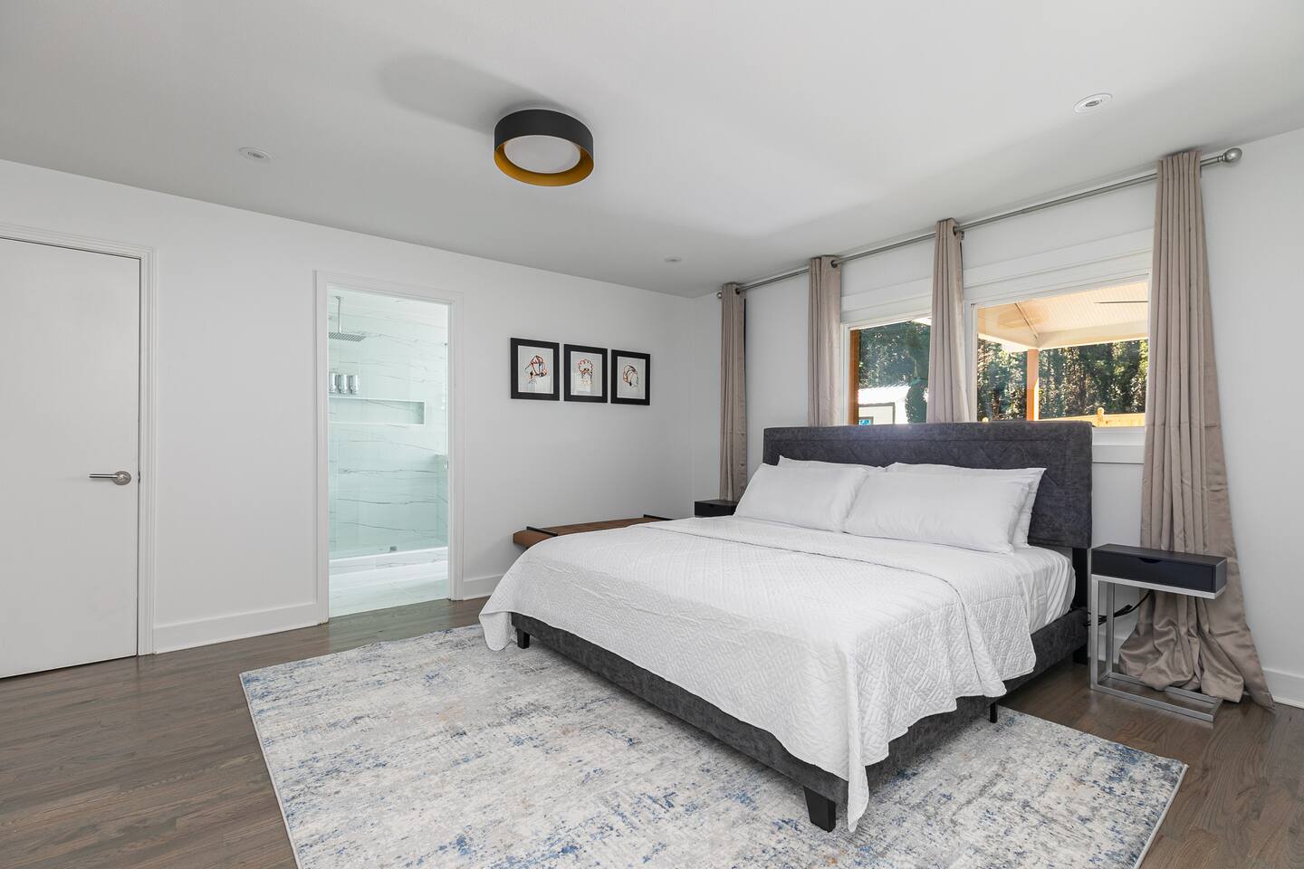 Discover the epitome of upscale living at The Oak Tree Oasis, a stunning 4-bedroom escape that combines modern elegance with serene natural surroundings. Nestled behind a majestic Oak Tree, this home welcomes you with open arms to a world of comfort and style. Key Features: Grand Master Suite: Experience true luxury with not one but two master suites, including a Grand Master Bedroom and a double vanity bathroom – your private sanctuary within a sanctuary. Modern Elegance: This modern home boasts an open floor plan in the main living space, ensuring a seamless flow of comfort throughout. Flat-screen smart TVs grace every room, while a welcoming dining room space sets the stage for shared moments. Complimentary Indulgences: Delight in the little extras with complimentary tea, coffee, wine, and snacks, making your stay a truly indulgent experience. Nature's Embrace: Relax on the covered back patio as you take in the serene beauty of the expansive backyard, a peaceful oasis behind the Oak Tree. Convenience at Every Turn: Prime Location: Your oasis is conveniently located just 15 minutes from Six Flags and White Water, 5 minutes to a major highway, and within a 20-minute drive to State Farm Arena, Mercedes Benz Stadium, SunTrust Braves Stadium, Cumberland Mall, Buckhead, and the airport. Ample Parking: Park with ease in the private driveway, offering ample space for your convenience. Entertainment Everywhere: Enjoy flat screens in every room, including the living room, ensuring everyone has their entertainment fix. Blazing fast Wi-Fi, as seen in the photos, keeps you connected seamlessly. House Rules: Please note that The Oak Tree Oasis is not a venue for parties. This peaceful neighborhood is family-oriented, and the home is designed for quiet enjoyment. Be sure to read the house rules thoroughly for details. Your escape to The Oak Tree Oasis is not just a stay; it's an invitation to a luxurious retreat where modern comfort meets natural tranquility. Book now and immerse yourself in the welcoming embrace of this upscale haven! Convenient to everything! 15 mins from Six Flags and White Water 5 mins to major highway 20 mins to State Farm Arena (Atlanta Hawks) 20 mins to Mercedes Benz stadium (Atlanta Falcons) 12 mins to SunTrust Braves stadium (Atlanta Braves) 10 mins to Cumberland Mall (local, popular mall) 20 mins to Buckhead 20 mins to airport